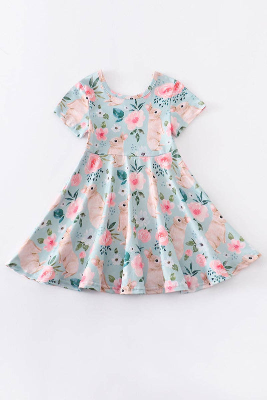 Easter Blue Rabbit Floral Girl Twirl Dress