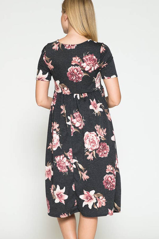 Flowered quarter sleeve maternity dress