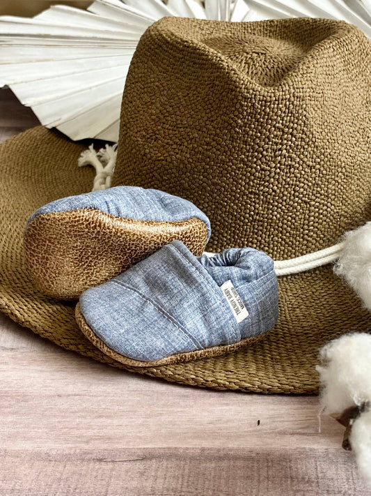 Blue Linen Angled moccasins 6-9mo