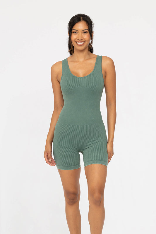 Blue Mineral Wash Ribbed Active Romper