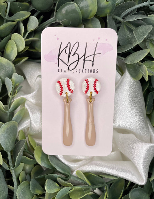 Softball/Baseball Bat Dangle Handmade Clay Earrings: Softball