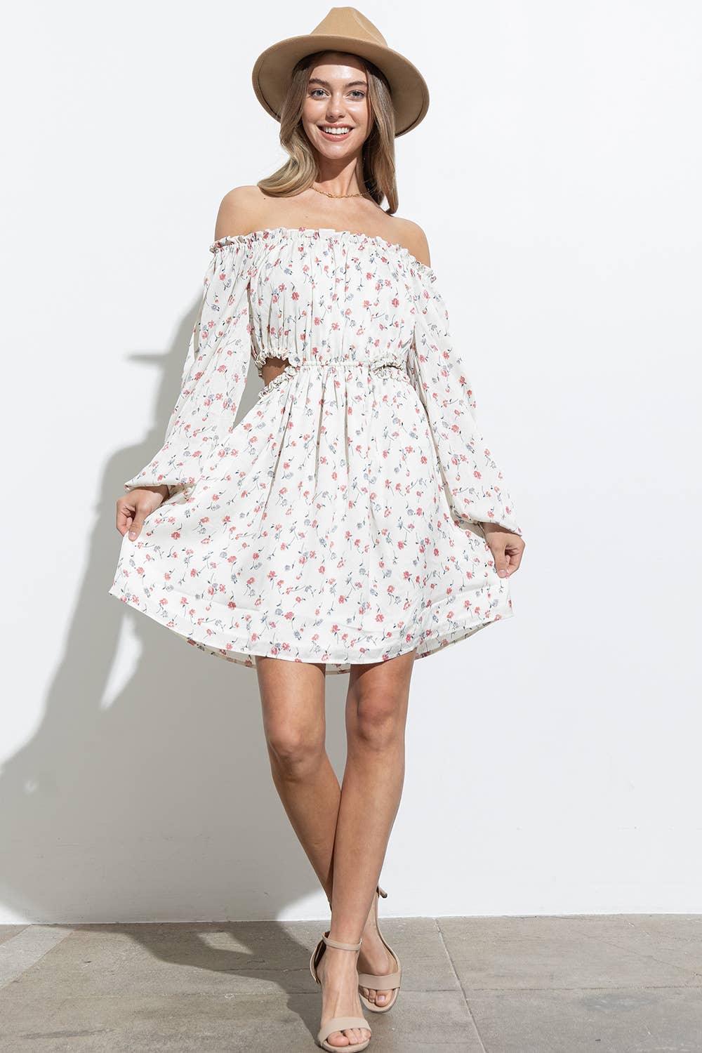 Floral Off the Shoulder Cut Out Ruffle Mini Dress