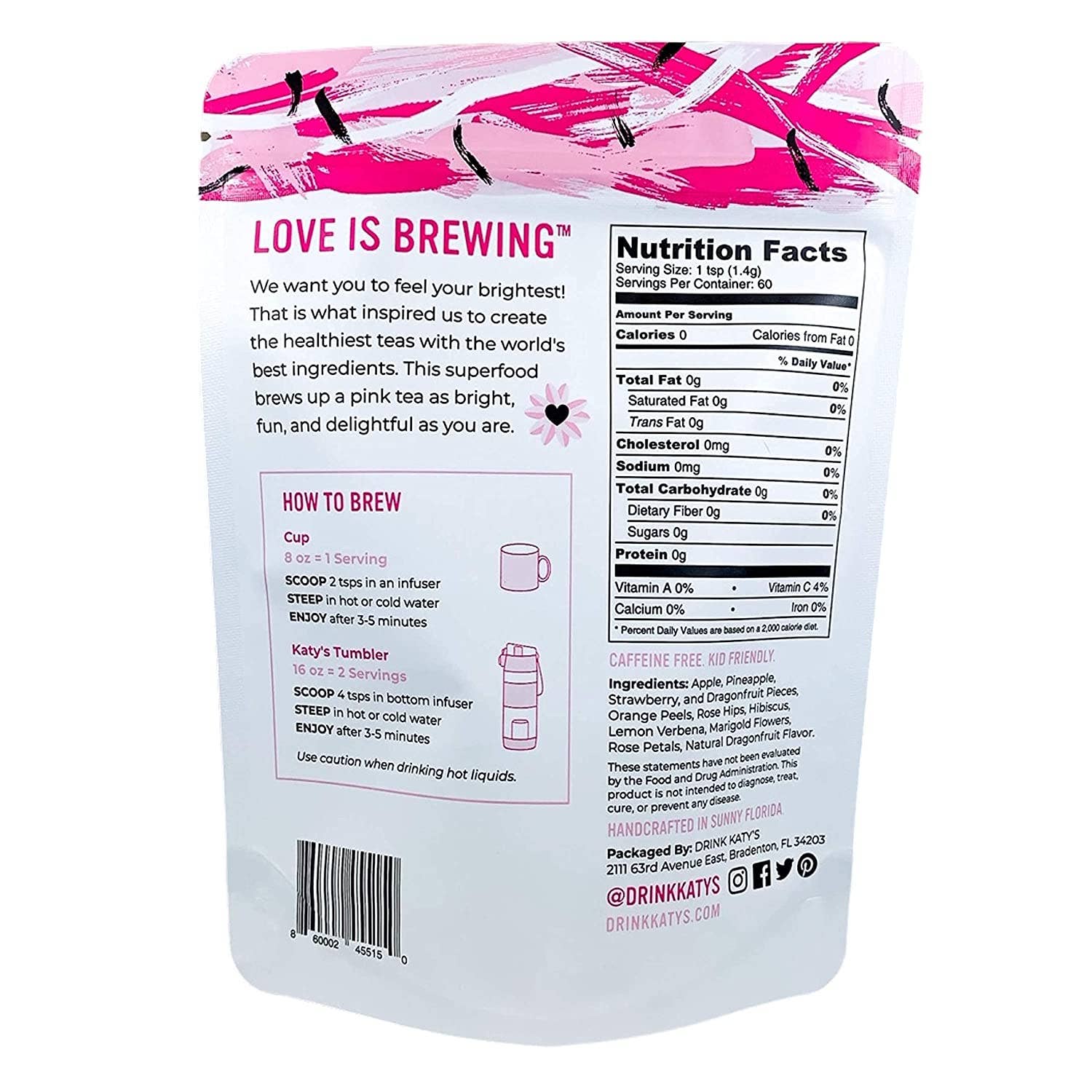 Come to paradise with our pink, tropical Dragonfruit herbal tea. A delicious combination of over 10 all-natural loose ingredients!