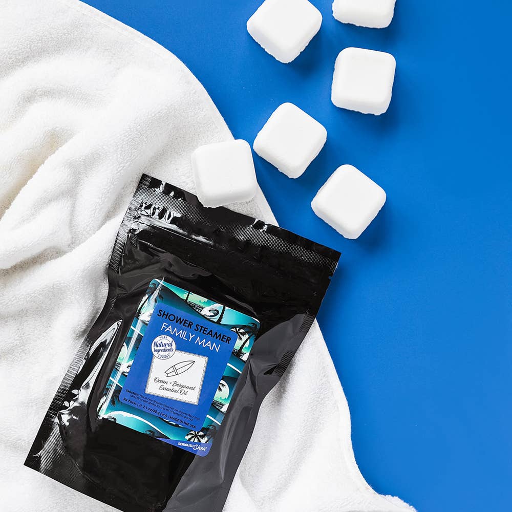 Our 6-pack essential shower steamers are your ticket to a refreshing and rejuvenating shower experience that awakens the senses and revitalizes your spirit. These compact, fragrant tablets bring the luxury of a spa right into your own bathroom, turning your daily shower into a therapeutic escape. Each bag consists of 6 individual steamers to place on the floor of the shower, when ready to use.