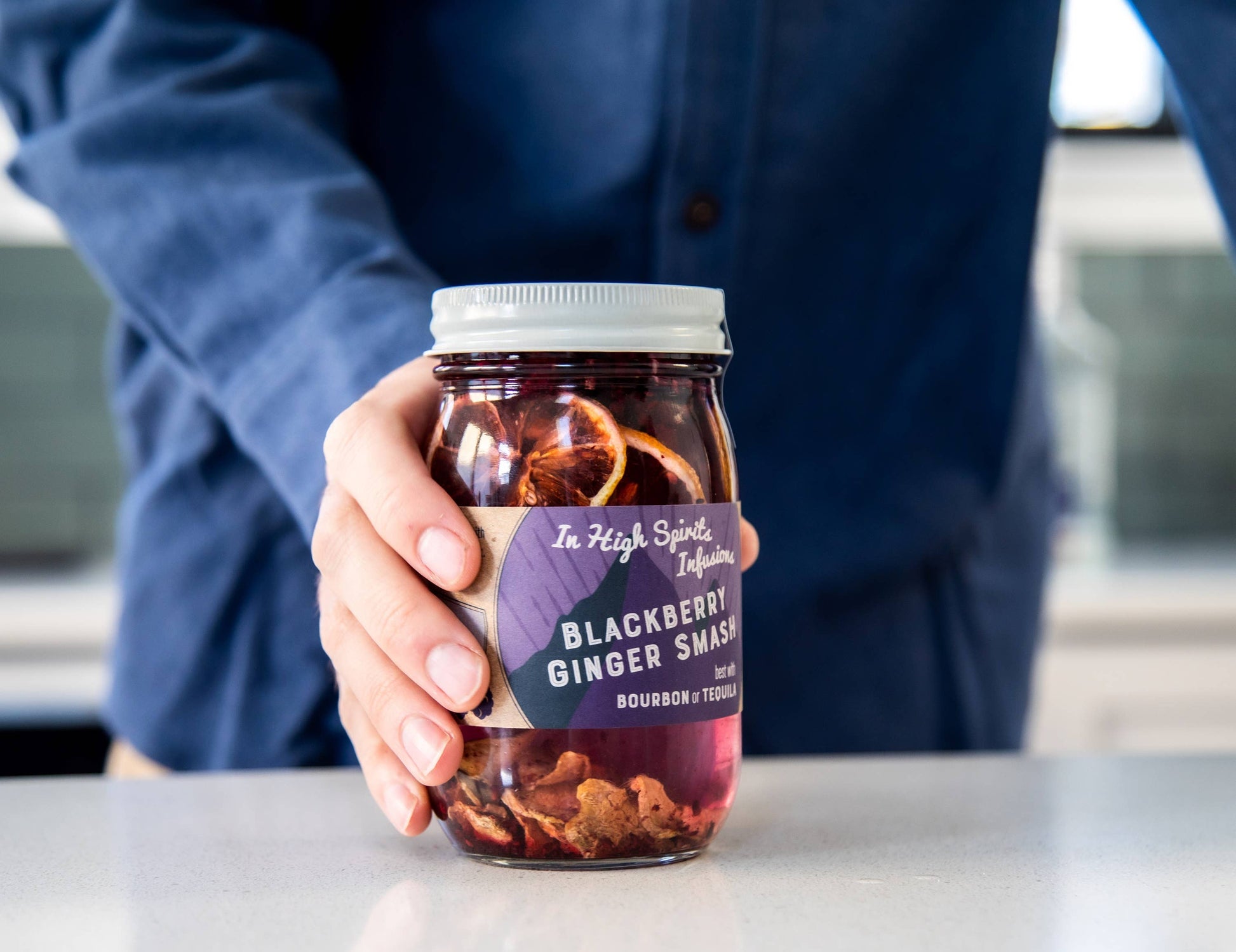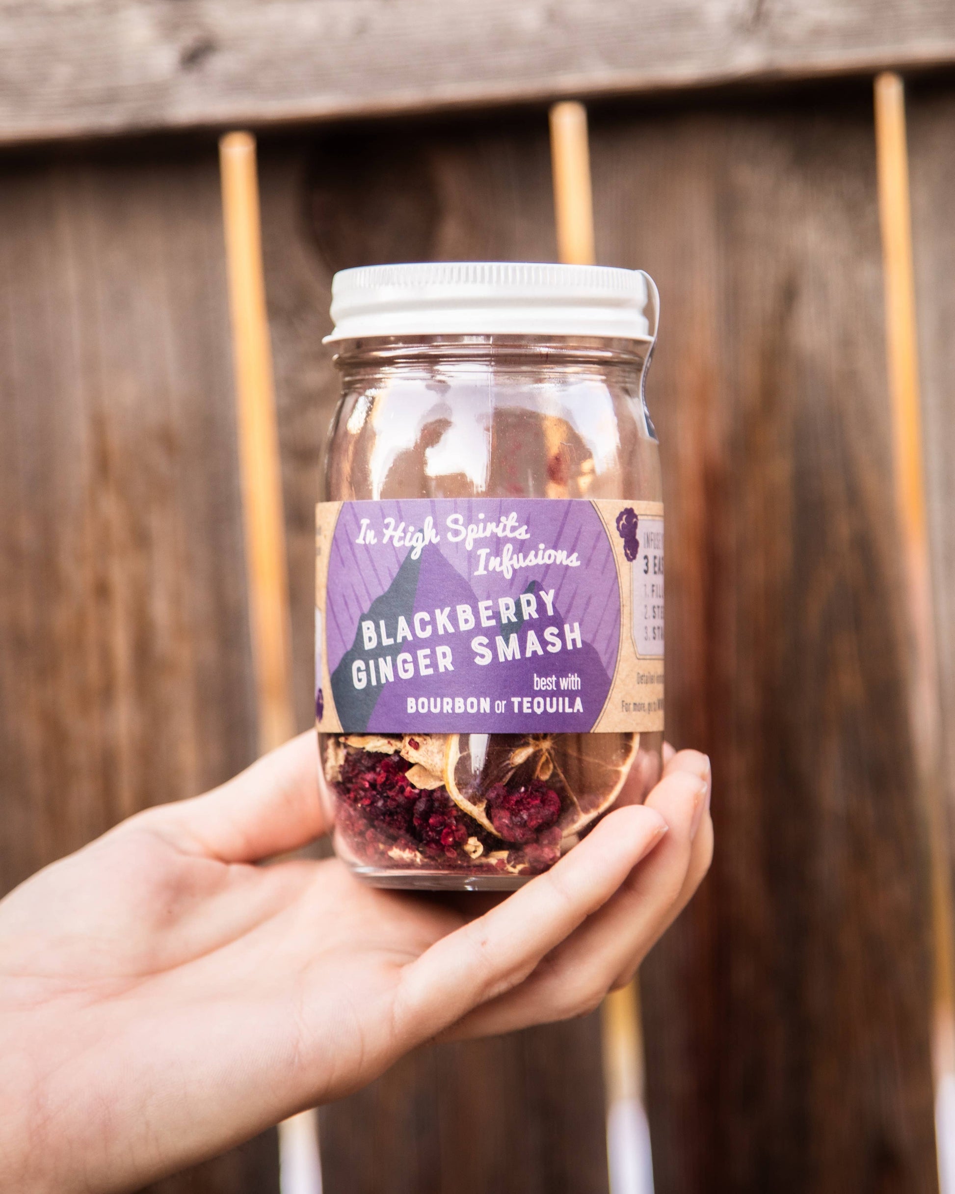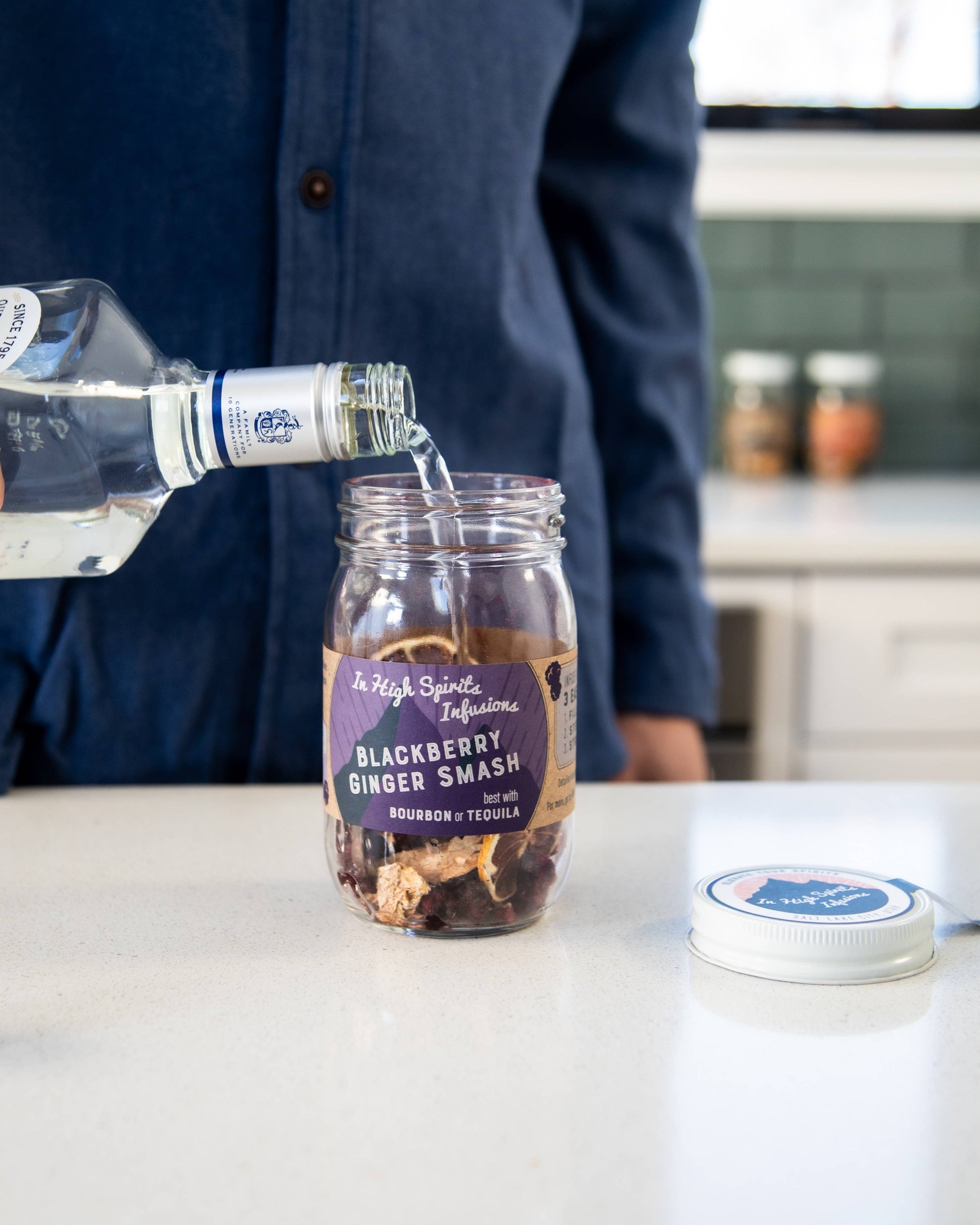 Infuse your spirits with our alcohol infusion kits! The Blackberry Ginger Smash infusion kit includes: blackberries, lemon, and ginger.