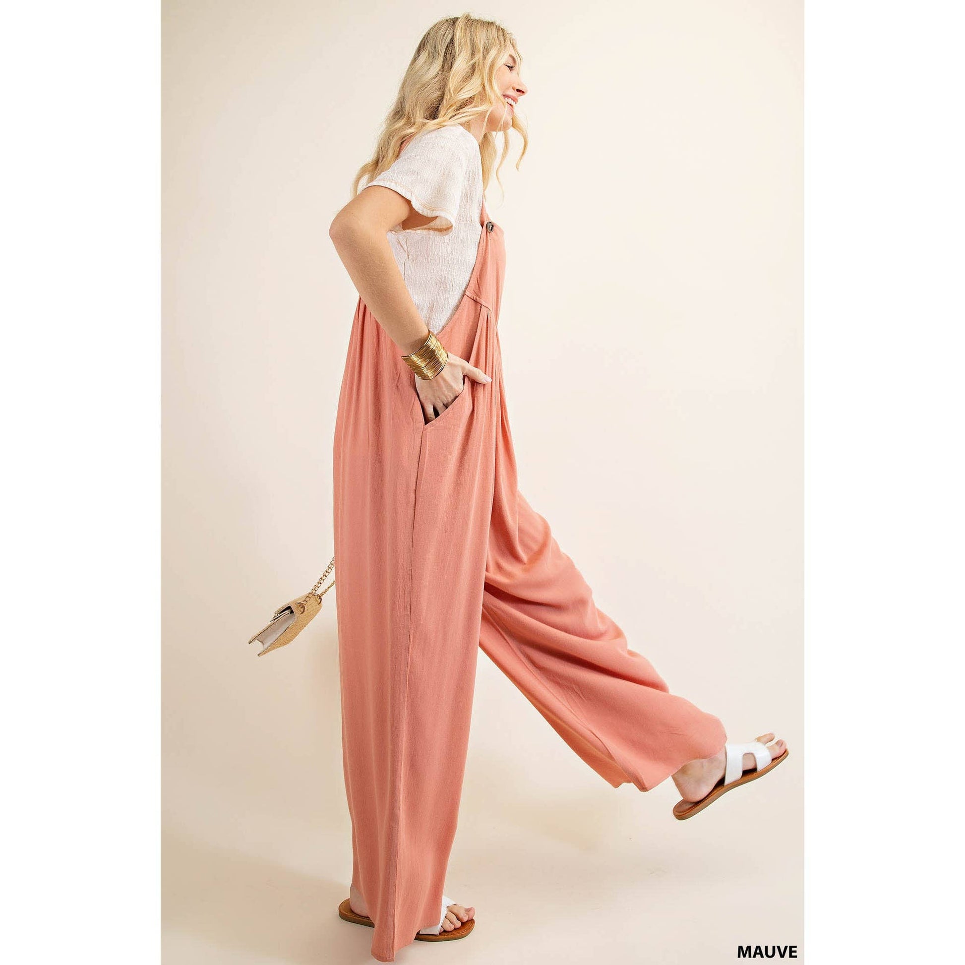 Adorable mauve overall jumpsuit! Perfect for any season.