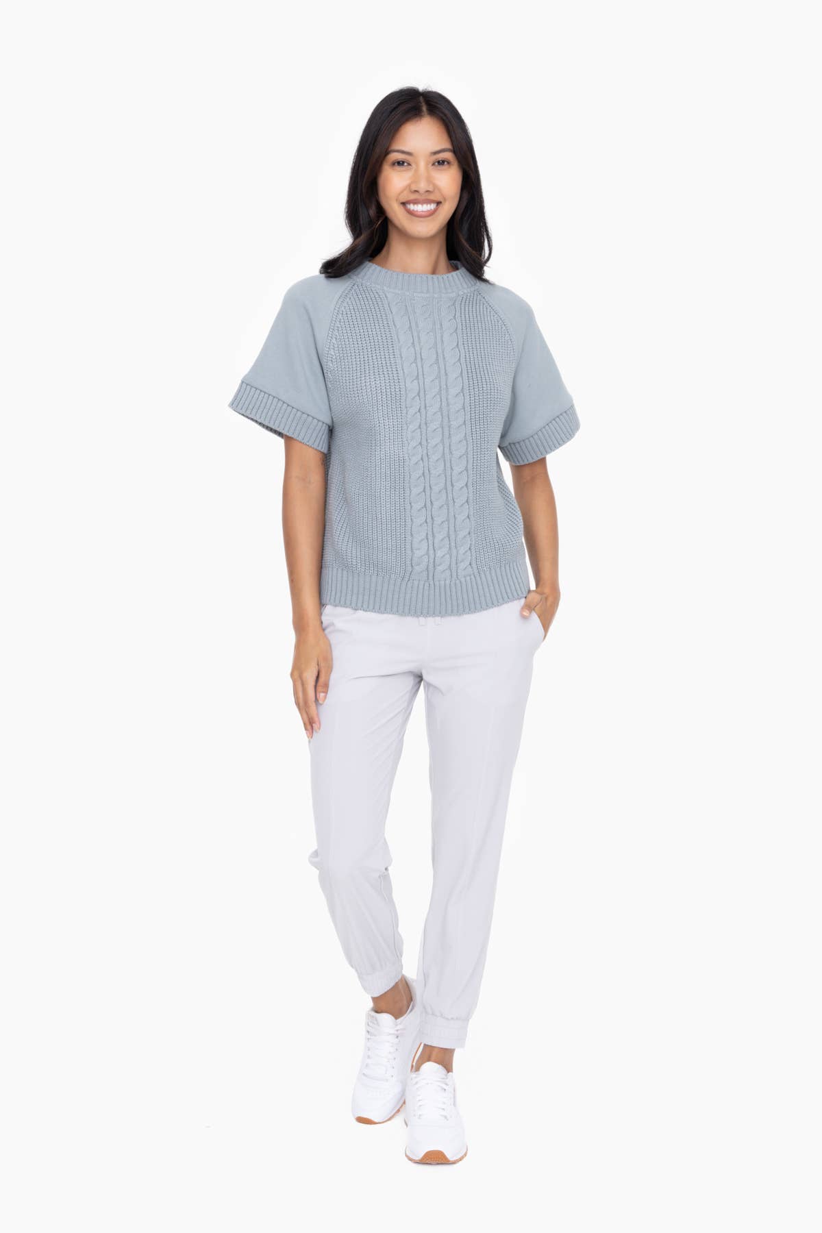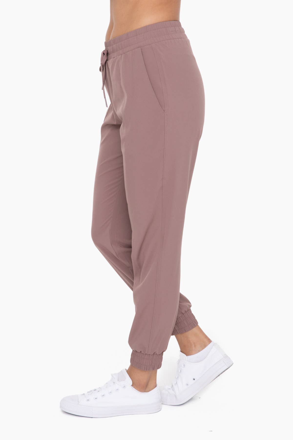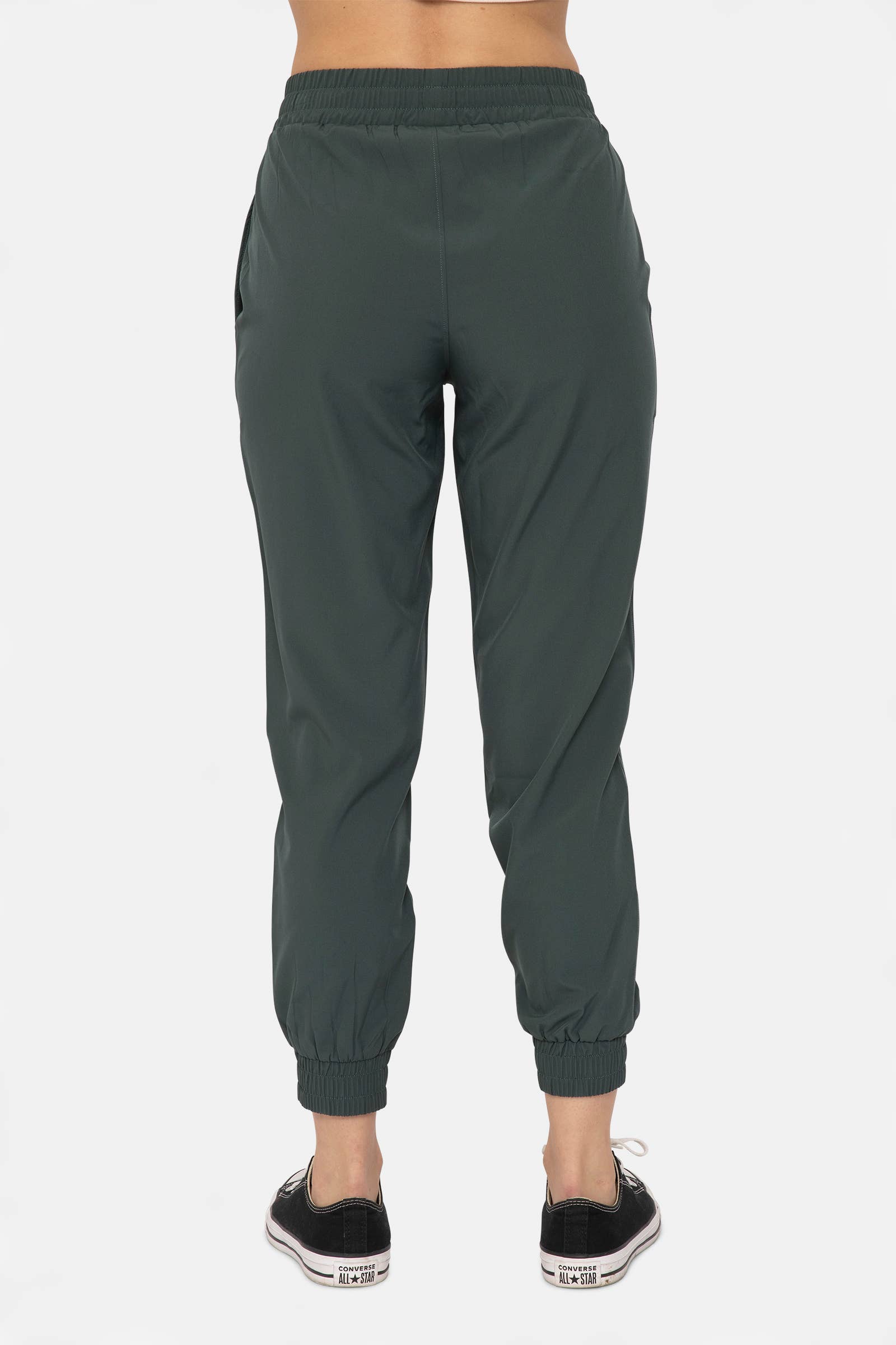 Joggers with a 7/8 length and features slanted pockets, elasticized waistband with a drawstring closure, and cuffed ankles. Can pair with any kind of top.