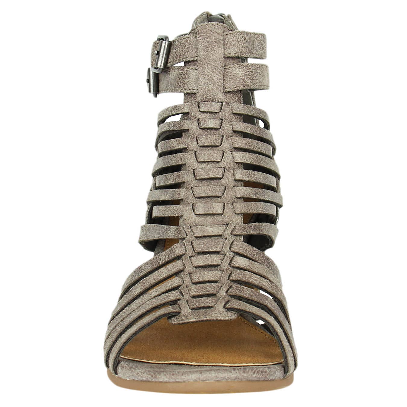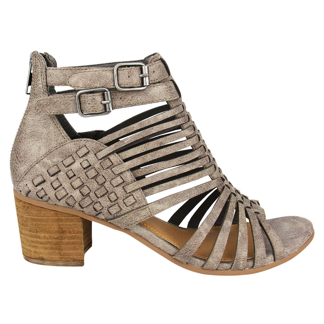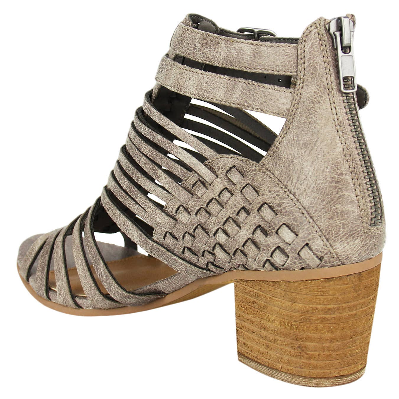 Faux leather Ofanto heals! This is just the right look on this casual pump for your life style. . The pattern design is a gladiator caged pattern with and a functional ankle strap. Functional zipper for easy access on and off. These pumps sit on a Stacked heel height 2 inches. T.