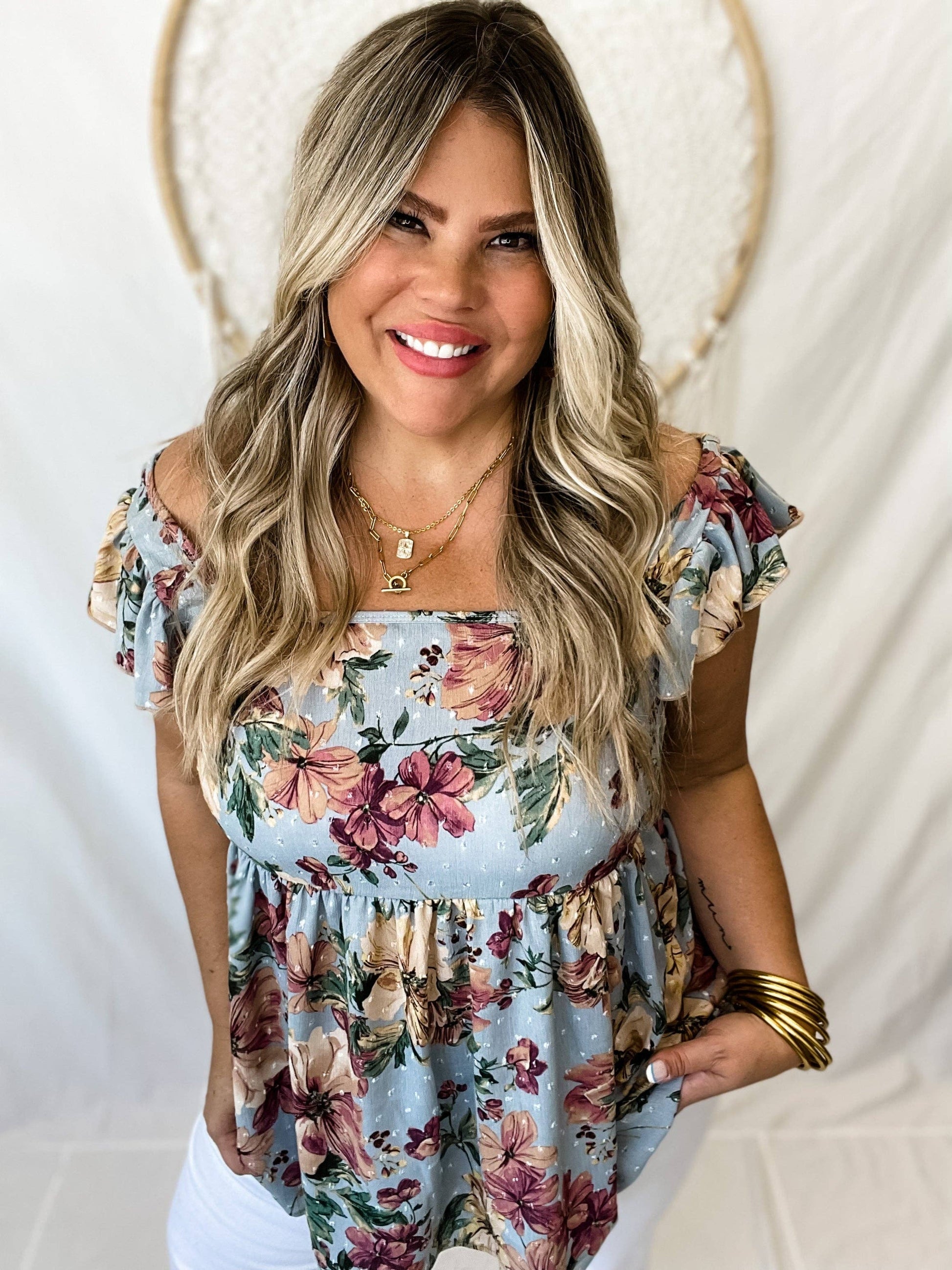 Beautiful, top quality, Swiss dot fabric top! Drapes and flows perfectly. Features feminine ruffle sleeves and a flattering square neckline. Bust part is a more fitted look with a babydoll drop waist. Fabric features tiny textured dots and is non stretchy. Can be worn on or off shoulder LENGTH ON 1X- APPROX 28" (from shoulder to bottom hem)