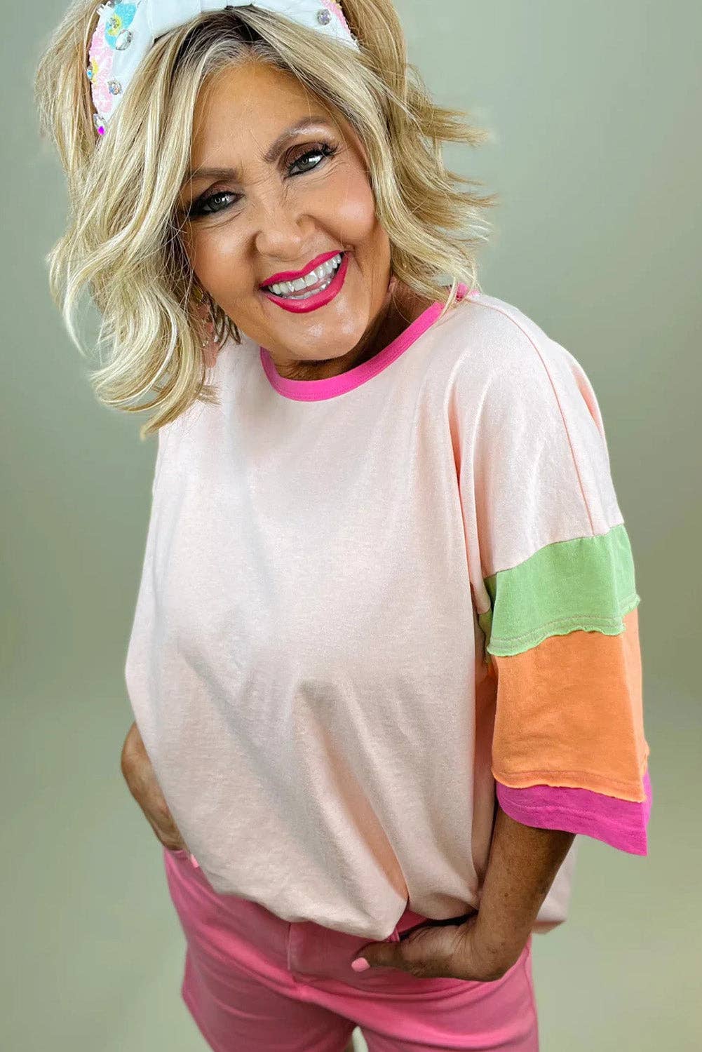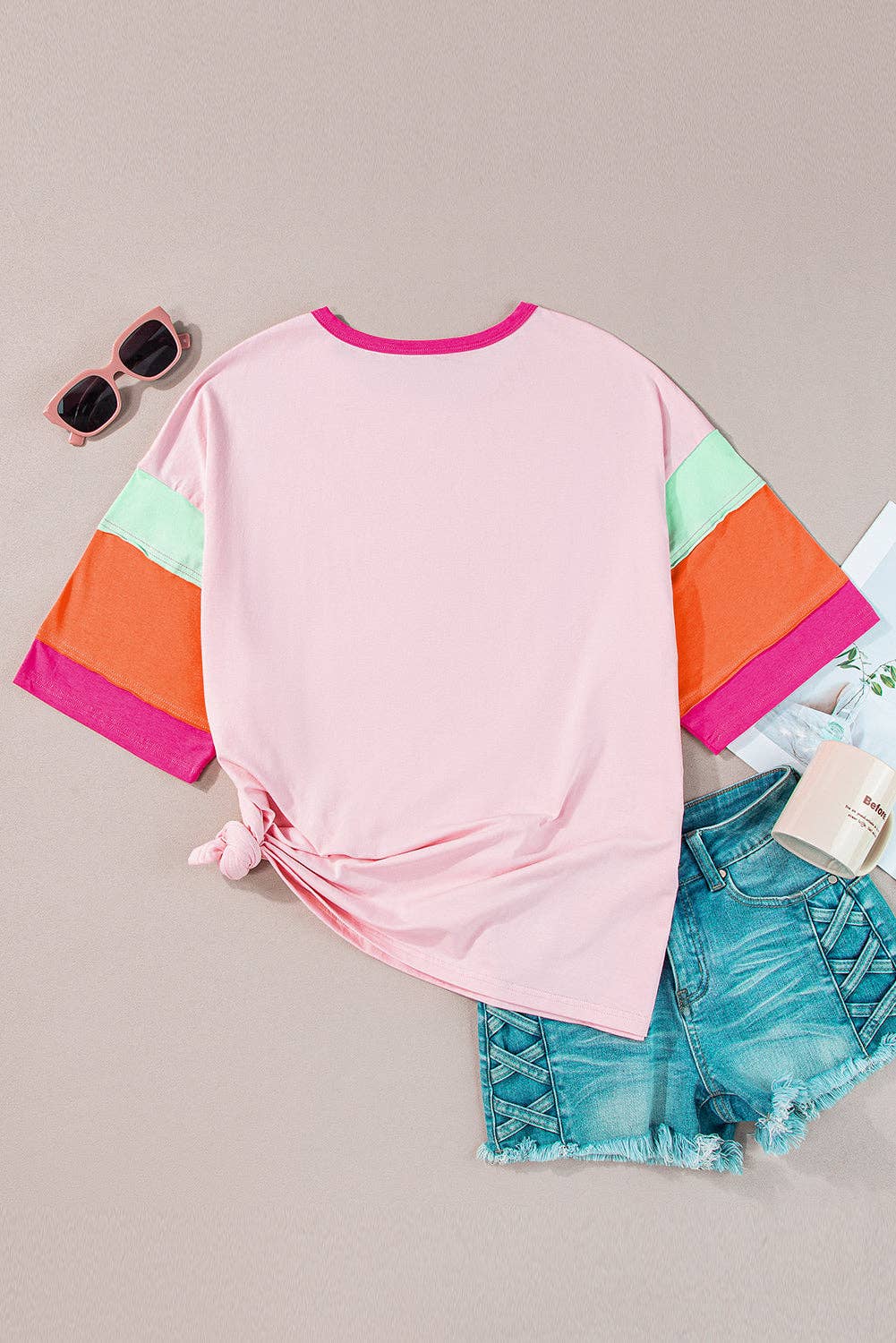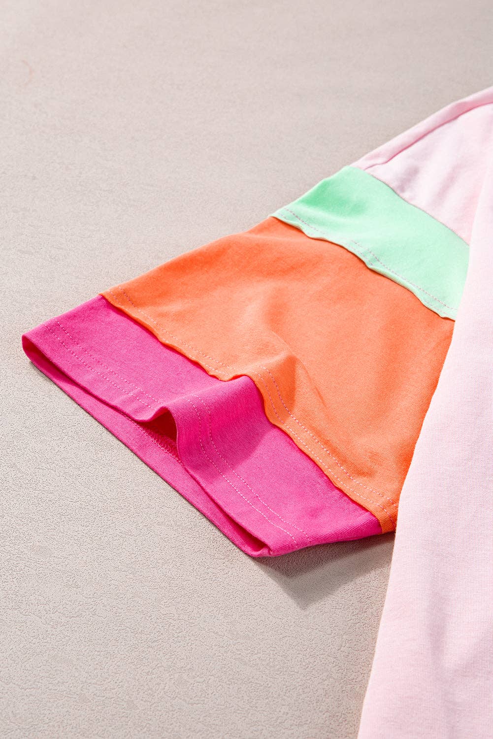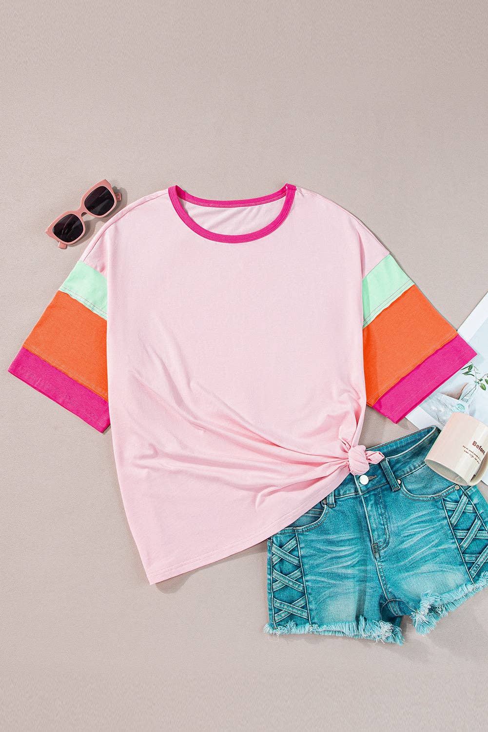 This color block is very sweet and stylish. It features a loose fit style with round neck, half sleeves and straight hemline.