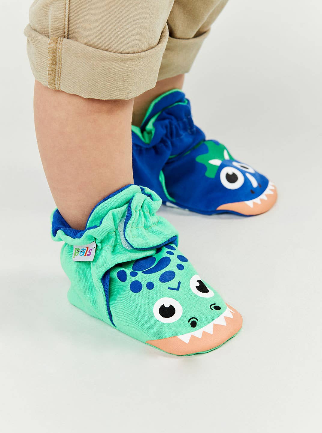 T-Rex & Triceratops Dinosaurs Non-Slip Baby Booties: 12-18 Months