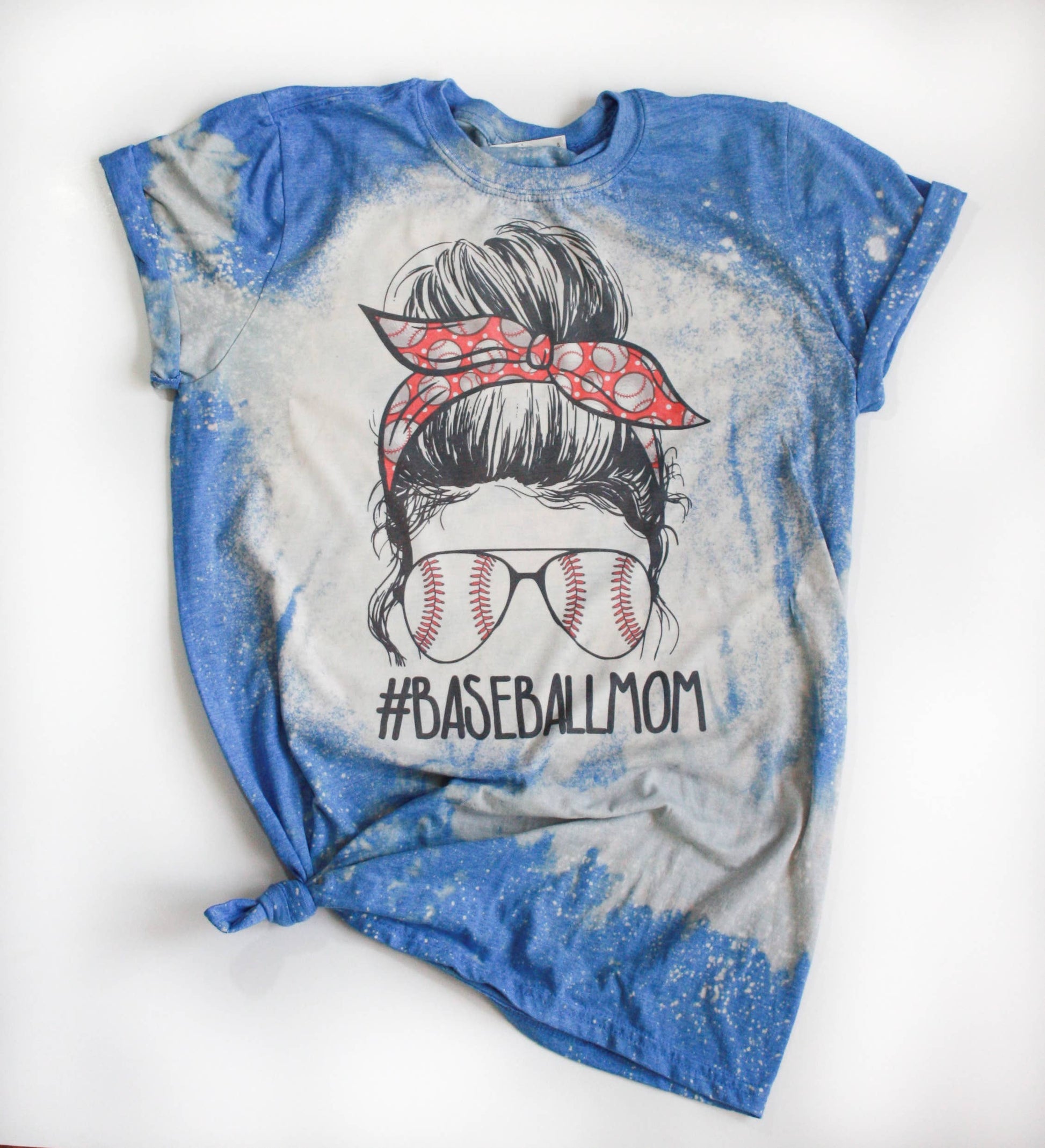 Baseball Mom Bleached Tee: Royal Blue